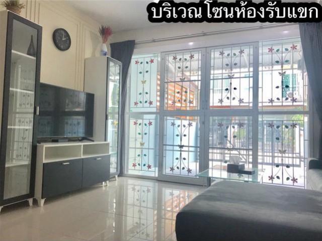 พื้นที่ 18 ตร.ว พื้นที่ใช้สอย 150 ตร.ม 3 ห้องนอน 3 ห้องน้ำ ห้องรับแขก ห้องครัว(บิวท์อิน) ที่จอดรถ เครื่องปรับอากาศ 4 เครื่อง เฟอร์นิเจอร์ครบ เครื่องทำน้ำอุ่น ผ้าม่านทุกห้อง มีตู้รองเท้า มีมุ้งลวดและเหล็กดัด ติดวอลเปเปอร์ ต่อเติมหลังบ้านเรียบร้อย สำหรับวางเครื่องสักผ้า เครื่องอบผ้า ทีวี ตู้เย็น เครื่องไมโครเวฟ สภาพพร้อมเข้าอยู่ได้เลย