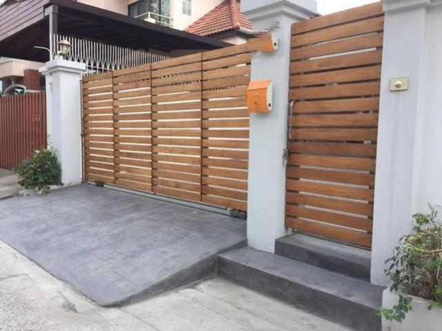 ประตูรั้วไม้สักทอง โครงสแตนเลสแข็งแรงไม่เป็นสนิมตลอดชีวิต
